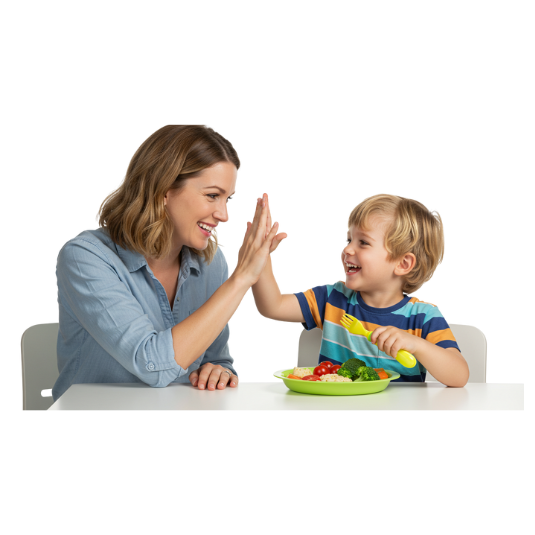 Seu filho começa a aceitar o que antes parecia impossível. As refeições ficam leves, e cada progresso traz mais confiança pra você.